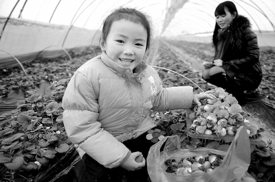1月19日,新蔡縣居民高嬙帶著孩子正在關(guān)津鄉(xiāng)高灣村草莓大棚里采摘草莓。高灣村是新蔡草莓種植專業(yè)村,全村建有草莓大棚30座。春節(jié)臨近,大棚草莓成熟上市,供不應(yīng)求,每畝大棚草莓可收入3萬多元。