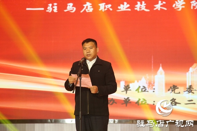 4月26日下午,駐馬店職業(yè)技術(shù)學(xué)院舉辦“追尋紅色歲月 湊響青春樂(lè)章”五四表彰大會(huì)。校黨委副書(shū)記、校長(zhǎng)宋華民,市委宣傳部四級(jí)調(diào)研員文教科科長(zhǎng)張穎,校黨委委員、副校長(zhǎng)李鳳霞,宣傳統(tǒng)戰(zhàn)部部長(zhǎng)徐青等人參加活動(dòng)。