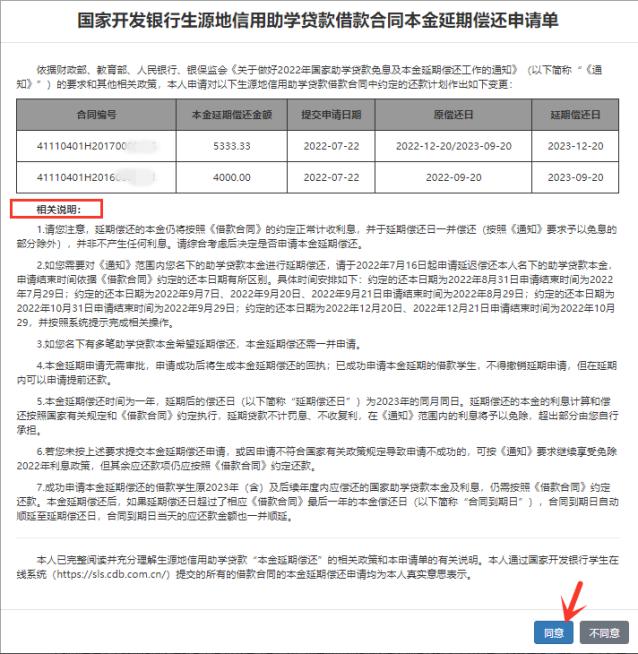 3.如借款學生對名下多筆國家助學貸款的本金申請延期償還,則需依據(jù)相關《借款合同》約定的2022年最早的償還日,按照時間要求申請延期(截止時間為2022年8月29日),通過學生在線系統(tǒng)針對各筆擬延期償還的國家助學貸款本金一并申請。