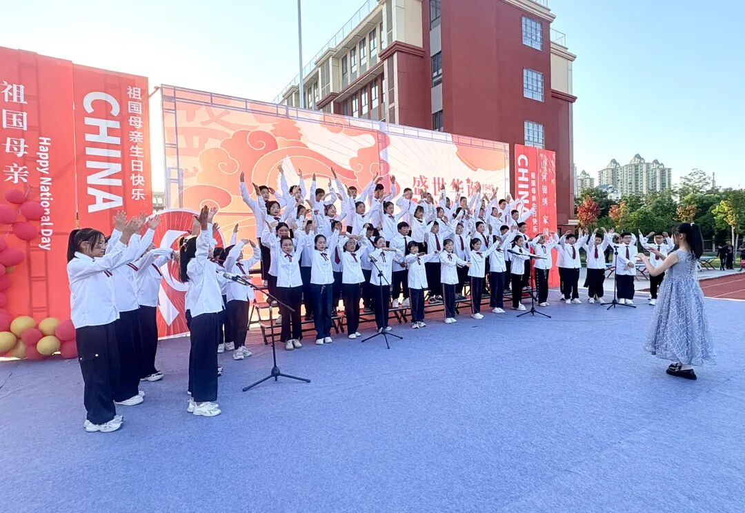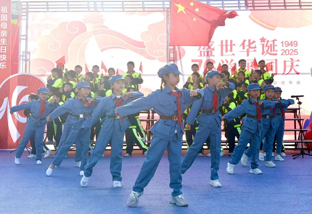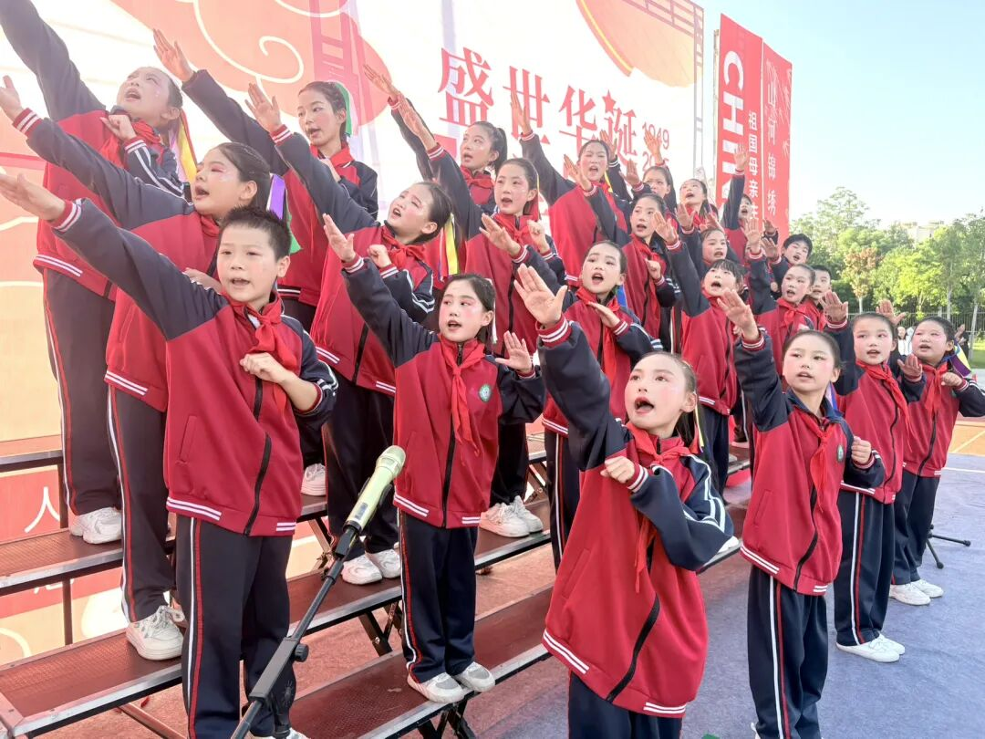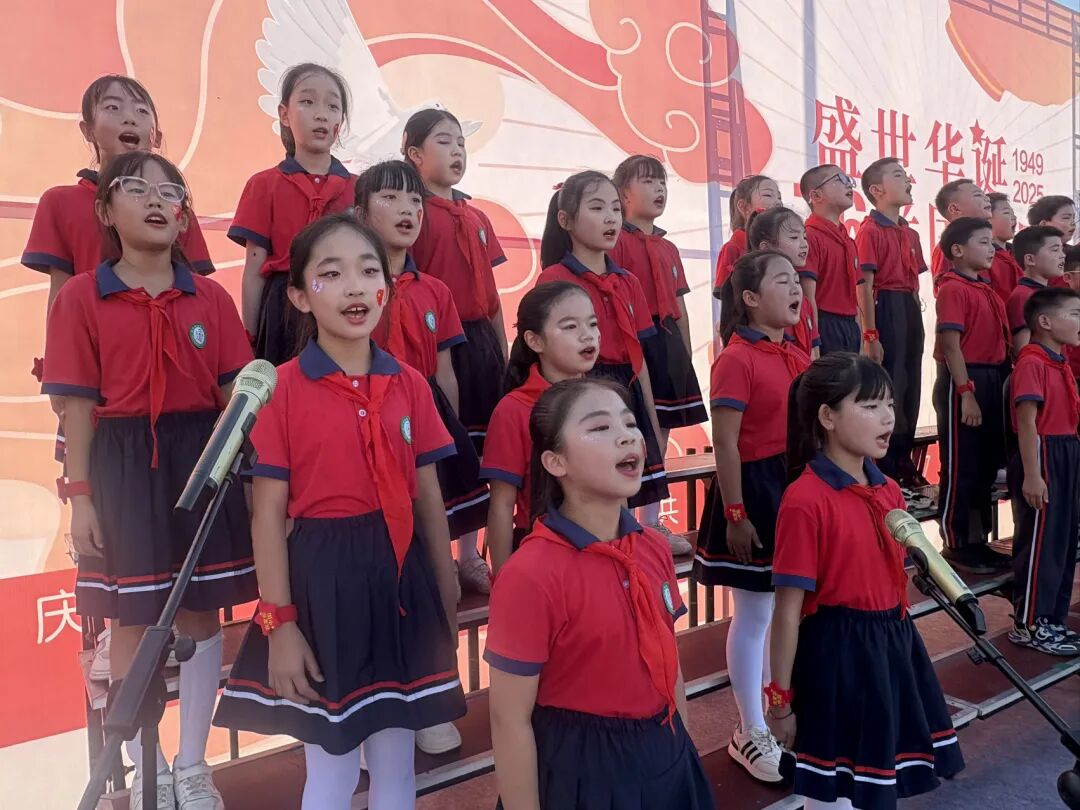 孩子們的歌聲或許稚嫩,卻充滿力量;動(dòng)作或許簡(jiǎn)單,卻飽含真誠(chéng)。他們揮舞著小紅旗,臉上洋溢著自豪的笑容,將對(duì)祖國(guó)的祝福融入每一個(gè)音符、每一個(gè)眼神。臺(tái)下師生跟著旋律輕輕哼唱,掌聲與歌聲交織,匯成一片愛(ài)國(guó)的海洋。