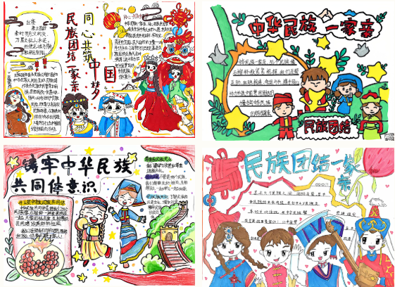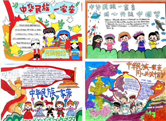 同學(xué)們以畫(huà)筆為媒,借色彩傳情,全心投入到創(chuàng)作之中。畫(huà)紙上,維吾爾族的艾德萊斯綢紋樣與藏族的特色圖案交相輝映,“中華民族一家親”“民族團(tuán)結(jié)”等醒目標(biāo)題與生動(dòng)圖畫(huà)相輔相成。有的作品描繪了各民族攜手歡歌的場(chǎng)景,有的講述了民族團(tuán)結(jié)的動(dòng)人故事,還有的抒發(fā)了對(duì)祖國(guó)統(tǒng)一、民族復(fù)興的美好向往。每一幅作品都主題鮮明、構(gòu)思巧妙,既展現(xiàn)了同學(xué)們的藝術(shù)才能,也成為凝聚民族情感、表達(dá)愛(ài)國(guó)情懷的生動(dòng)載體。