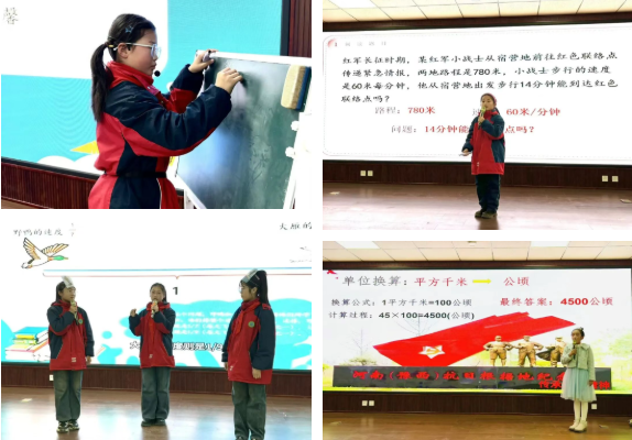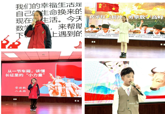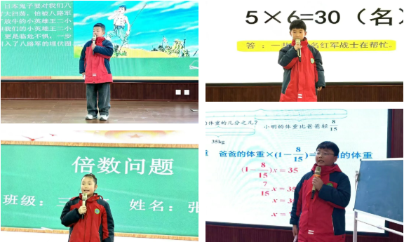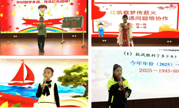 比賽中,選手們借助PPT清晰呈現解題過程,有條理地闡述思路,部分學生還靈活運用教具進行直觀演示,使抽象的數學知識變得生動可感。低年級學生雖年齡小,卻能清晰說明算理,展現扎實的基礎;高年級學生則從多角度展開分析推理,體現思維的靈活性。值得一提的是,不少選手在說題過程中融入紅色文化元素,挖掘紅色故事中的數學內涵,讓數學思維與紅色精神相互映照,生動詮釋了“紅帆教育”的理念。