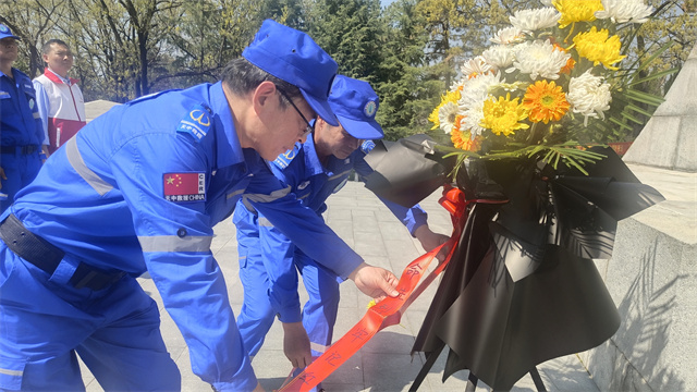 儀式結(jié)束后,隊(duì)員們手持黃菊,繞行紀(jì)念碑一周,輕撫碑文上鐫刻的烈士姓名,將鮮花輕輕擺放在紀(jì)念碑基座前,傳遞著對英烈的無限追思。“每一朵菊花都代表我們對先烈的承諾:你們用生命守護(hù)的信仰,我們必將代代傳承。”救援隊(duì)隊(duì)長王得山的話語鏗鏘有力。
