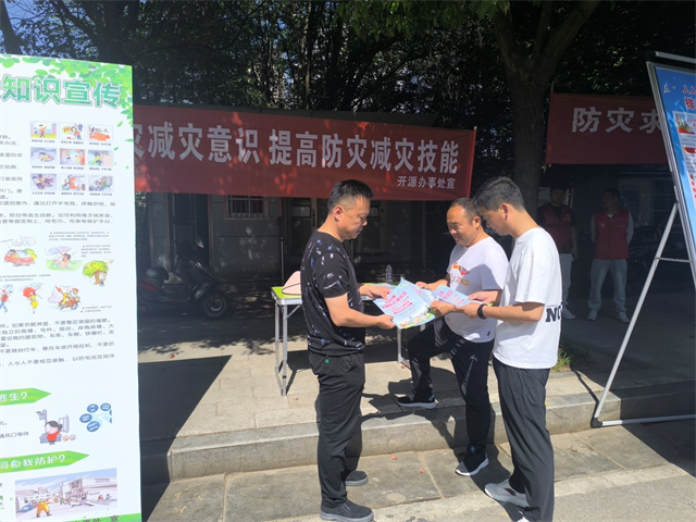 5月12日是第17個(gè)全國(guó)“防災(zāi)減災(zāi)日”,為提高全民風(fēng)險(xiǎn)防范意識(shí)和避險(xiǎn)自救能力,宣傳和普及防災(zāi)減災(zāi)專業(yè)知識(shí)。當(dāng)天上午, 經(jīng)濟(jì)開(kāi)發(fā)區(qū)開(kāi)源辦事處開(kāi)展了一系列防災(zāi)減災(zāi)宣傳活動(dòng)。
