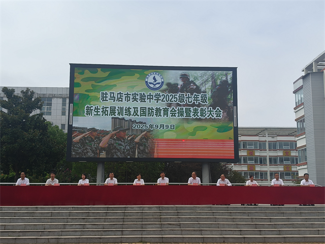 9月9日下午,駐馬店市實驗中學(xué)2025級七年級新生拓展訓(xùn)練及國防教育匯報表演暨表彰大會在該校操場隆重舉行,為為期十天的新生軍訓(xùn)畫上圓滿句號。