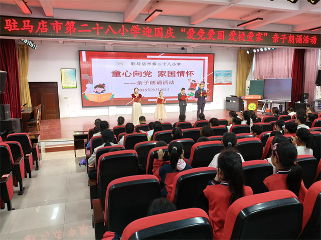 9月26日,駐馬店市第二十八小學(xué)沉浸在溫馨熱烈的氛圍中,一場別開生面的“愛黨愛國 愛校愛家”親子朗誦活動在此啟幕。48組親子家庭攜手登臺,以聲傳情、以誦達(dá)意,為全校師生獻(xiàn)上一場充滿家國情懷的視聽盛宴。
