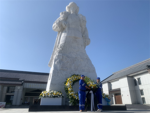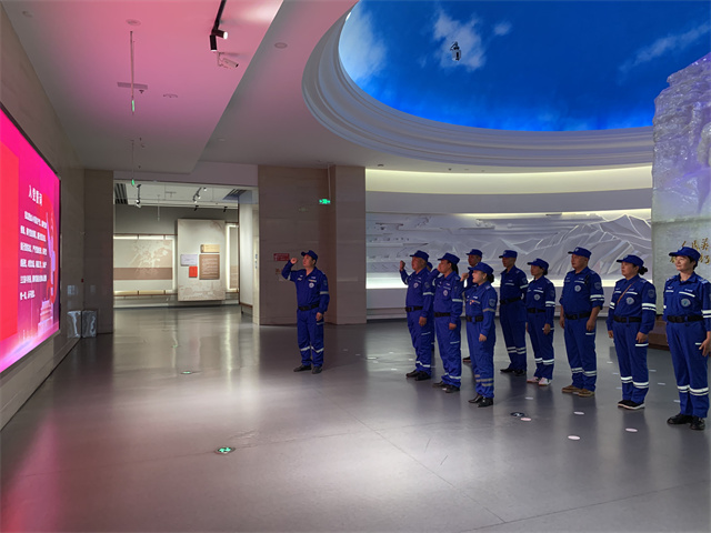 在紀(jì)念館內(nèi),黨員代表張永軍帶領(lǐng)全體黨員舉起右拳,莊嚴(yán)重溫入黨誓詞。鏗鏘有力的誓言回蕩在展廳中,不僅是對(duì)革命先烈的深切告慰,更堅(jiān)定了隊(duì)員們踐行初心使命、弘揚(yáng)志愿精神的信念。