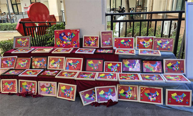 在美術(shù)展現(xiàn)場,一幅幅色彩斑斕、創(chuàng)意十足的作品,不僅展示了孩子們的藝術(shù)才華,更表達(dá)了他們對祖國的無限熱愛和美好祝愿。美術(shù)展以“喜迎國慶 禮贊中國”為核心,一年級制作中國地圖拼貼畫、二年級手工黏土、三年級手工折扇、五年級主題繪畫、六年級紅色風(fēng)車,以多種形式生動展現(xiàn)了學(xué)生對祖國的祝福以及對美好生活的向往。