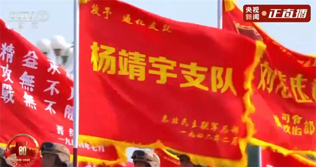 2025年9月3日,在紀(jì)念中國(guó)人民抗日戰(zhàn)爭(zhēng)暨世界反法西斯戰(zhàn)爭(zhēng)勝利80周年大會(huì)閱兵儀式中,“楊靖宇支隊(duì)”的戰(zhàn)旗迎風(fēng)飄揚(yáng),接受黨和人民的檢閱。近20秒的特寫畫面,令無(wú)數(shù)中華兒女心潮澎湃。在楊靖宇將軍的家鄉(xiāng)駐馬店,人們紛紛鼓掌歡呼,表達(dá)對(duì)英雄的崇敬與對(duì)家鄉(xiāng)的熱愛(ài)。