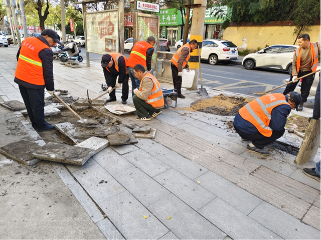 市政工人員搶抓晴好天氣,實(shí)施錯(cuò)峰、精細(xì)化施工,集中對(duì)人行道活動(dòng)磚塊進(jìn)行更換、對(duì)路面裂縫進(jìn)行專(zhuān)項(xiàng)整治。截至目前,已排查市政道路38條,重點(diǎn)巡查友誼路、正陽(yáng)路等路段,修復(fù)人行道活動(dòng)磚6處,瀝青路面3處。維修井蓋周邊破損1處。
