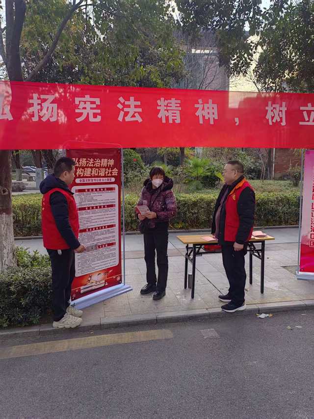 活動現(xiàn)場,天中廣場人流密集處懸掛起“弘揚憲法精神 建設法治街道”“依憲治國 依憲執(zhí)政”等醒目橫幅,辦事處綜治辦、消防安全服務中心、司法所等部門工作人員組成宣傳隊伍,搭建起政策咨詢、知識普及、糾紛指引等多項服務平臺。工作人員向過往群眾發(fā)放憲法讀本、法治宣傳折頁,用通俗語言講解憲法賦予公民的基本權(quán)利與義務、基層治理相關(guān)法律條款,重點解答群眾關(guān)心的婚姻家庭、勞動維權(quán)、鄰里糾紛、老年人權(quán)益保護等熱點問題。